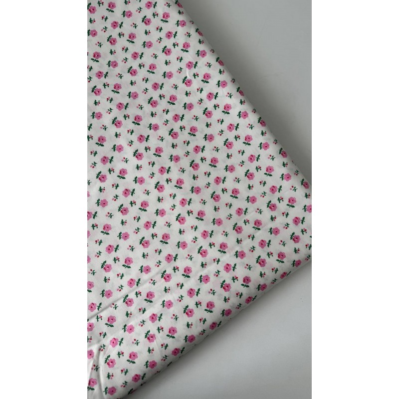1079 Хлопок Сатин 100 % 160 см " Розовые одинокие цветы"