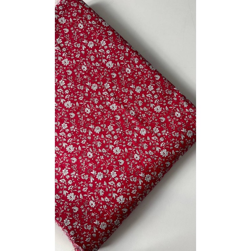 1069 Хлопок Сатин 100 % 160 см " Белые цветы на красном"