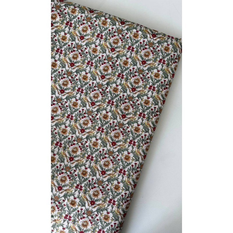 1076 Хлопок Сатин 100 % 160 см "Уильям Моррис птицы и цветы на светлом"