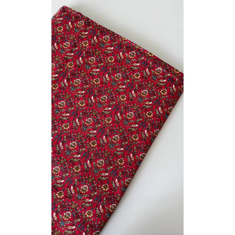 1075 Хлопок Сатин 100 % 160 см "Уильям Моррис птицы и цветы на огненном"