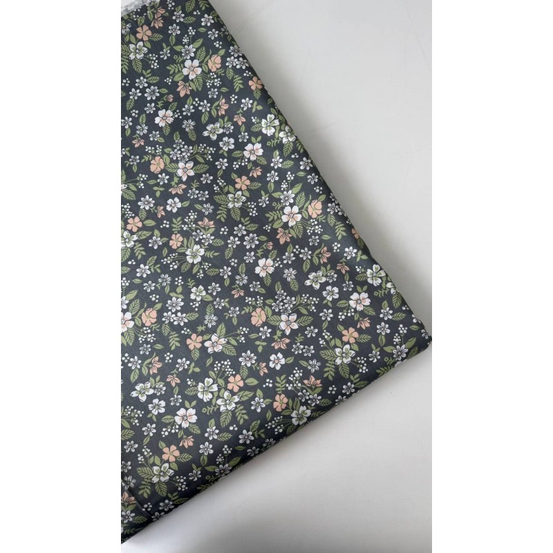 1087 Хлопок Сатин 100 % 160 см "Цветы древесного хребта на сером "