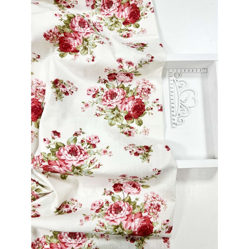 1030 Хлопок Сатин 100% "Россыпь цветов крупных бордо" ЦЕНА УКАЗАНА ЗА 1 СМ
